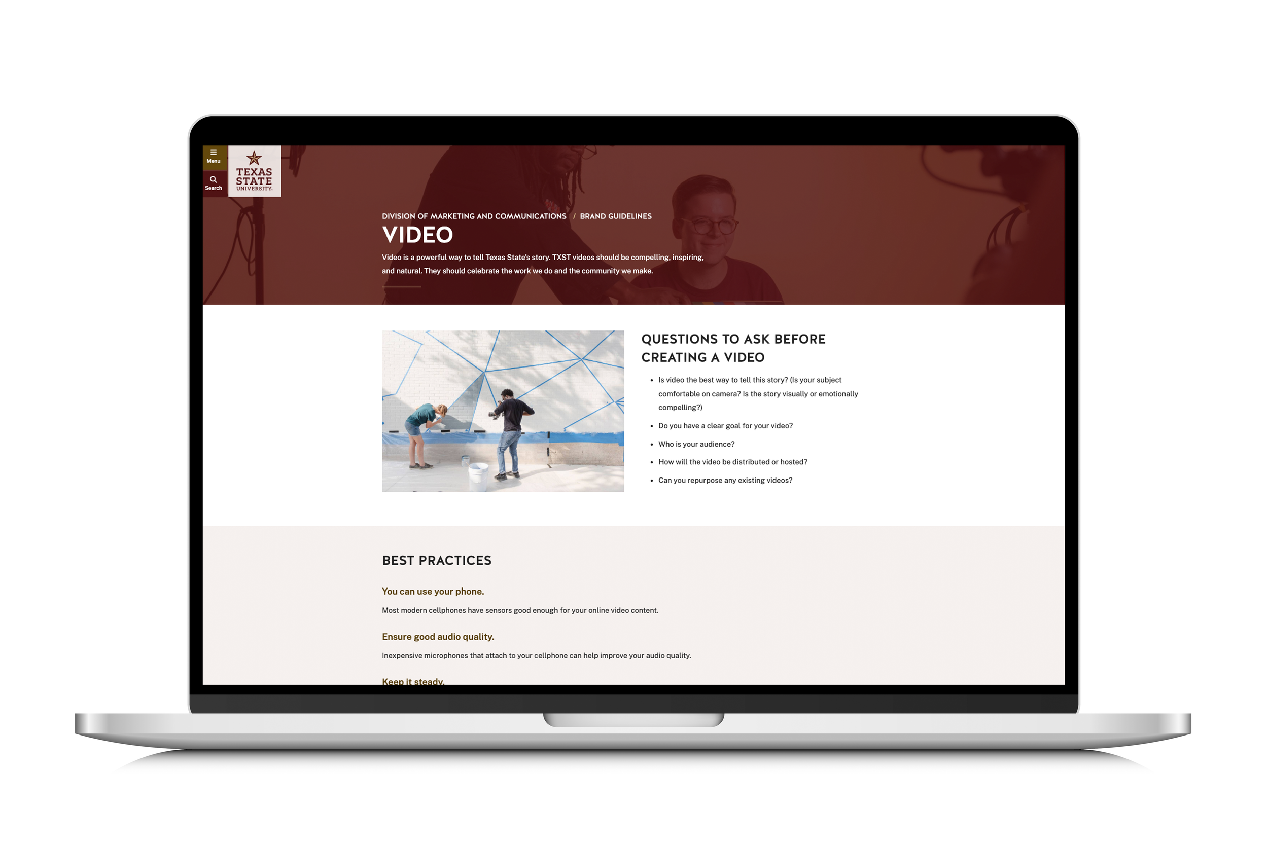Rebuilt from the ground up in 2021, our brand guidelines site empowers our campus community with DIY resources, downloadable assets, and practical guidance for brand compliance. As a dynamic and ever-evolving resource, it plays a central role in ensuring brand consistency and driving our brand’s success.