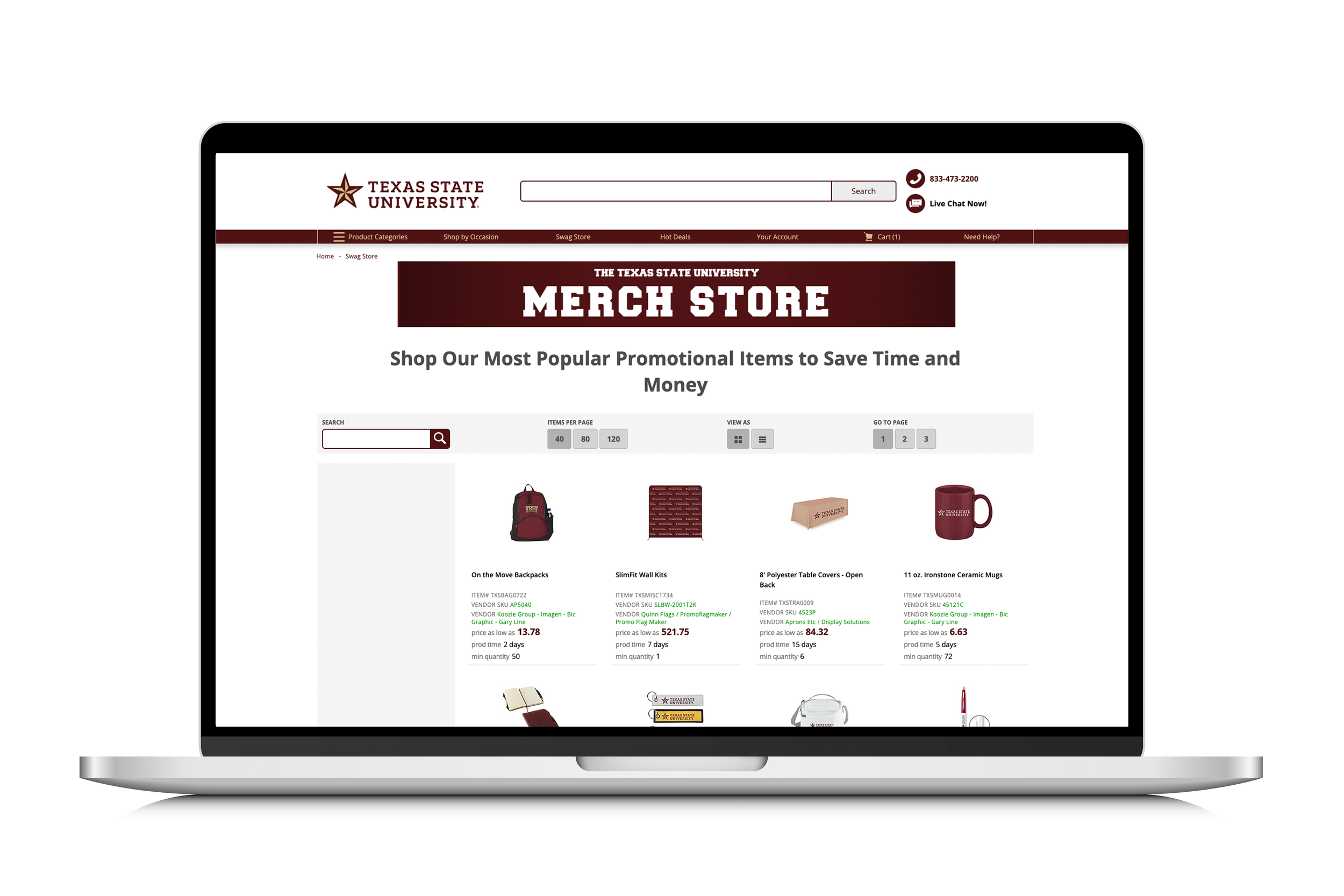To better manage and protect our brand, we introduced the TXST Promo Products store—an easy way for campus units to order approved, customizable merchandise.